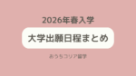 おうちコリア留学です🏠🌼 大学の2026年春入学出願日程をまとめています! ※2025/11/18時点の情報となります。最新情報が確認出来次第随時更新していきます。 ソウル大学 新入学 … 続きを読む 【大学】2026年春入学出願日程まとめ