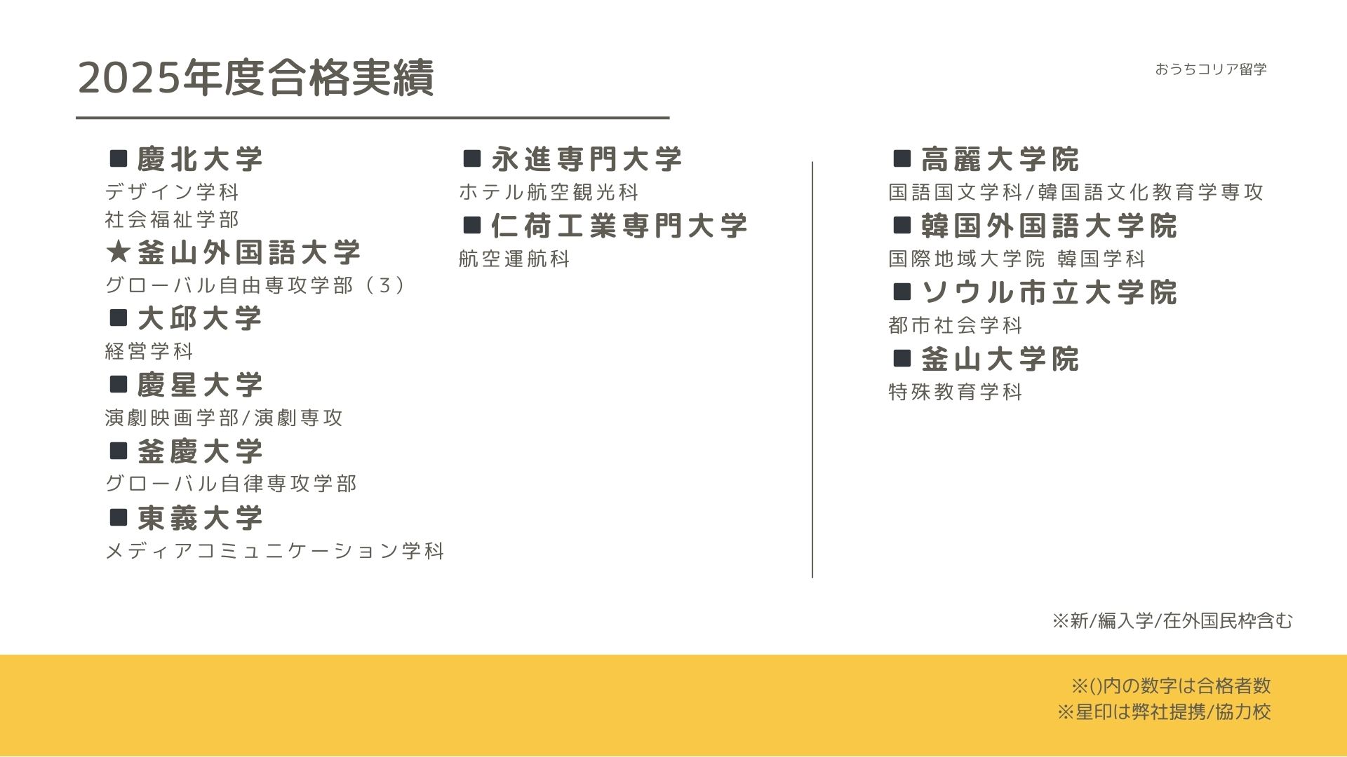 おうちコリア留学の合格者実績はこちら