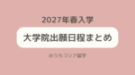 おうちコリア留学です🏠🌼 大学院の2027年春入学出願日程をまとめています! 2026/3/23時点の情報です。(随時更新) 2027年春入学募集要項発表前の学校は2026年春入学の情報を … 続きを読む 【大学院】2027年春入学出願日程まとめ