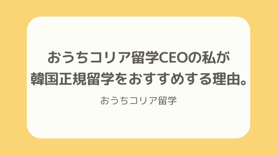 【CEO談】おうちコリア留学CEOの私が韓国正規留学をおすすめする理由。